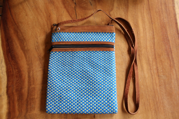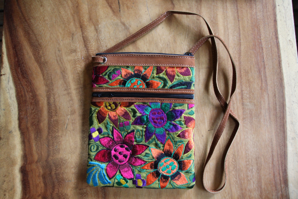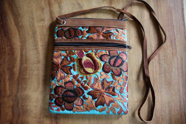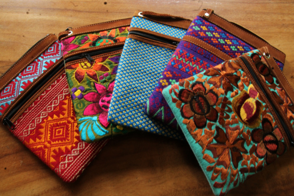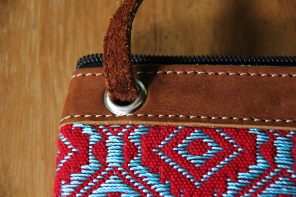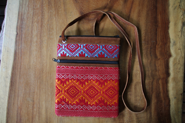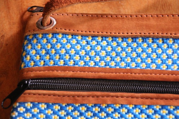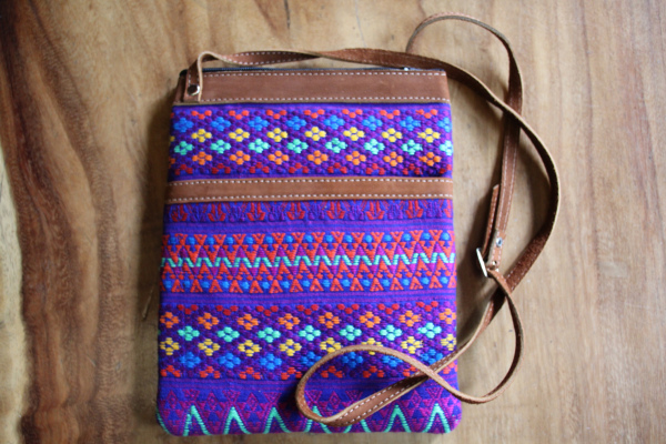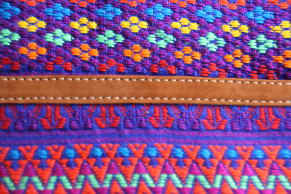 Bolsos tejidos a mano por artesanos de Guatemala. Posee una bolsa princial y otra secundaria. Ambas con cierre de cremallera reforzada en cuero.