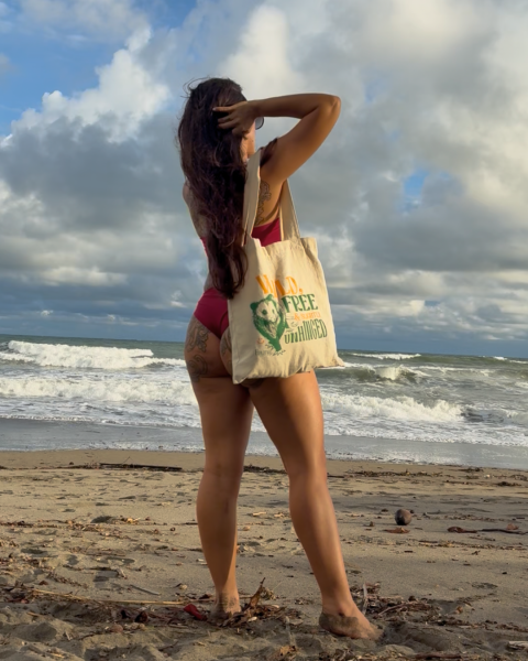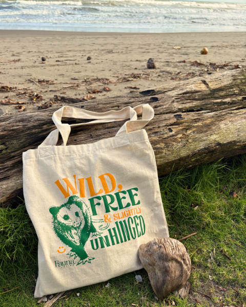 Totebag Wild and Free en dos tintas. Transfer de diseño por serigrafia. Base de tela color crema.